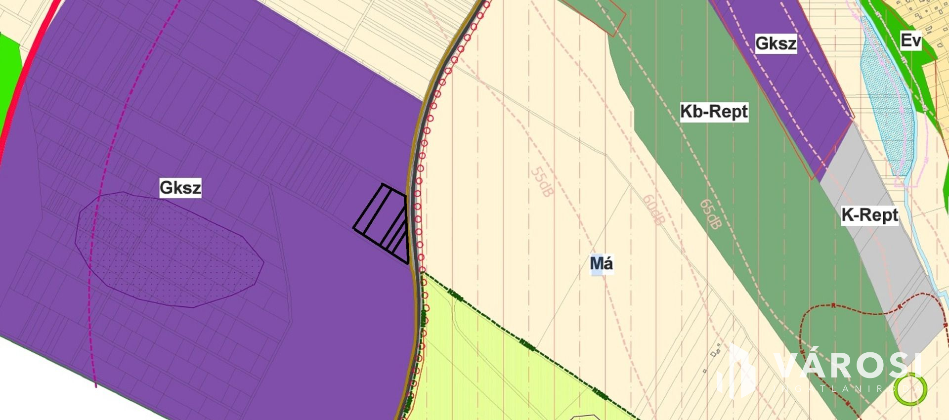 Az ingatlan övezeti besorolása Gksz ami potenciális befektetési lehetőség. A korábban kijelölt Gksz területek nagyrésze a közelmúltban átminősítésre kerültek és beépültek.