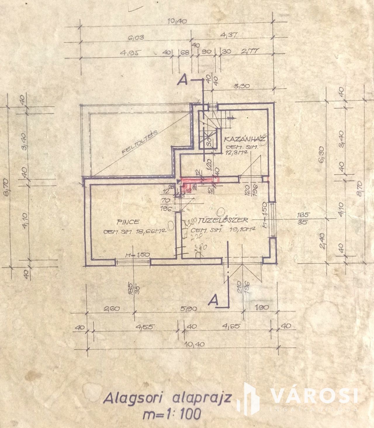 A pinceszinten tároló, műhely és kazánhelyiség a fűtési biztonság érdekében.