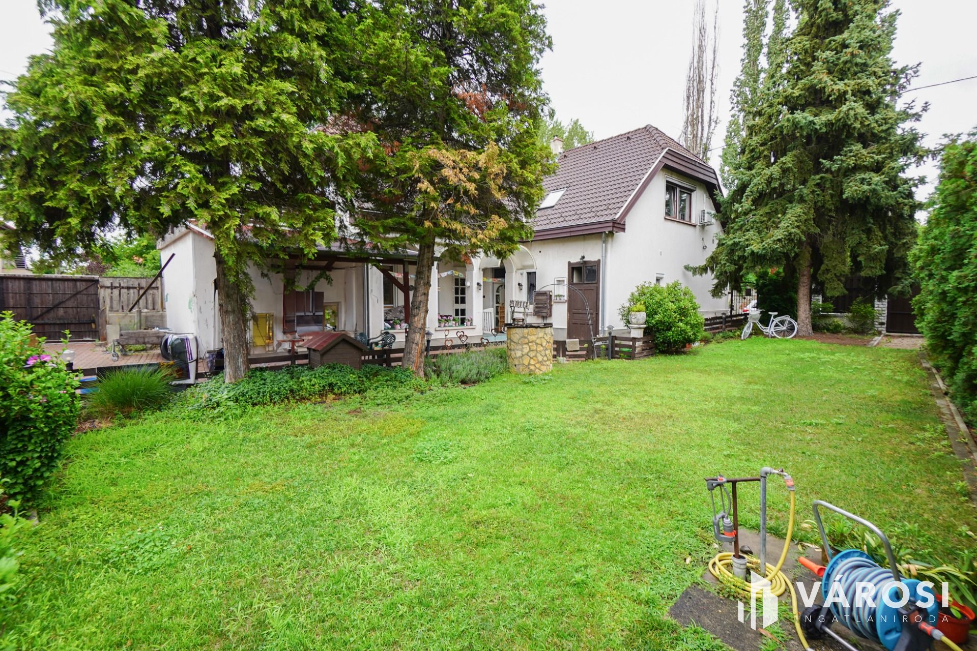 A 660nm-es kertben több autó parkolására alkalmas beálló mellett füvesített díszkertre és gyűrűs kútra lehetünk figyelmesek.
