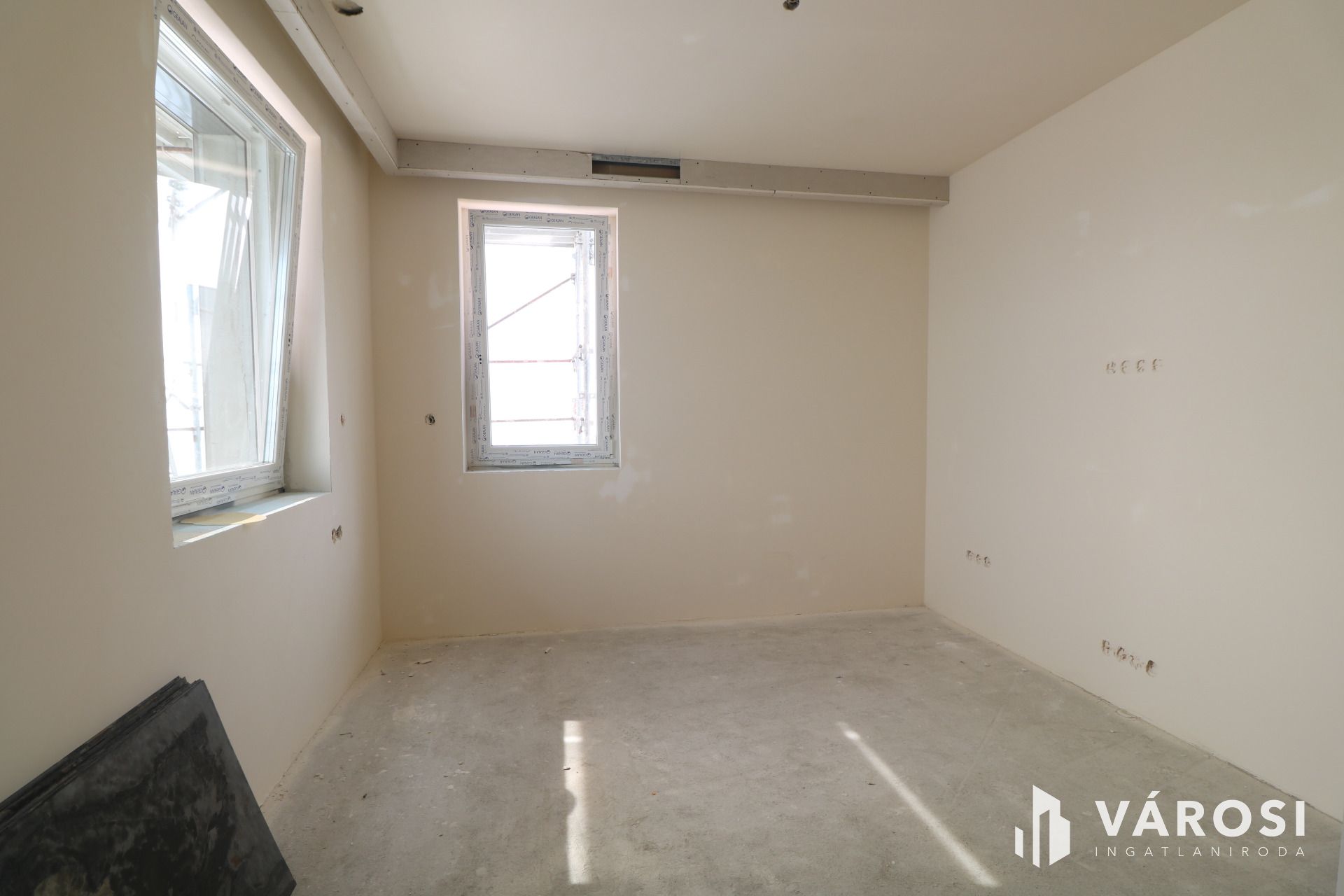 - Glettelt falak, dugaljak, kapcsolók, lámpatestek felszerelve.