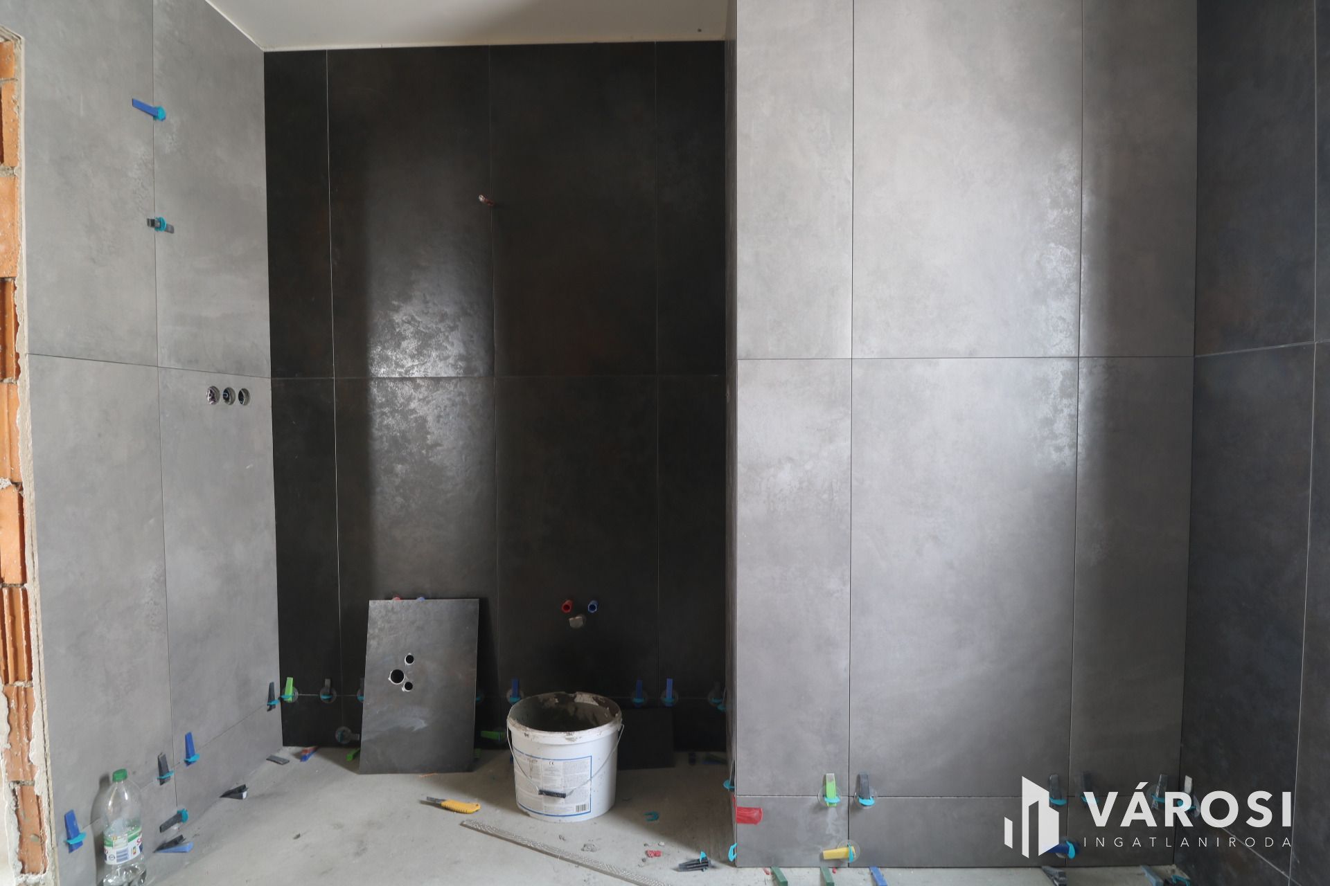 - Vizes helyiségek kiburkolva.