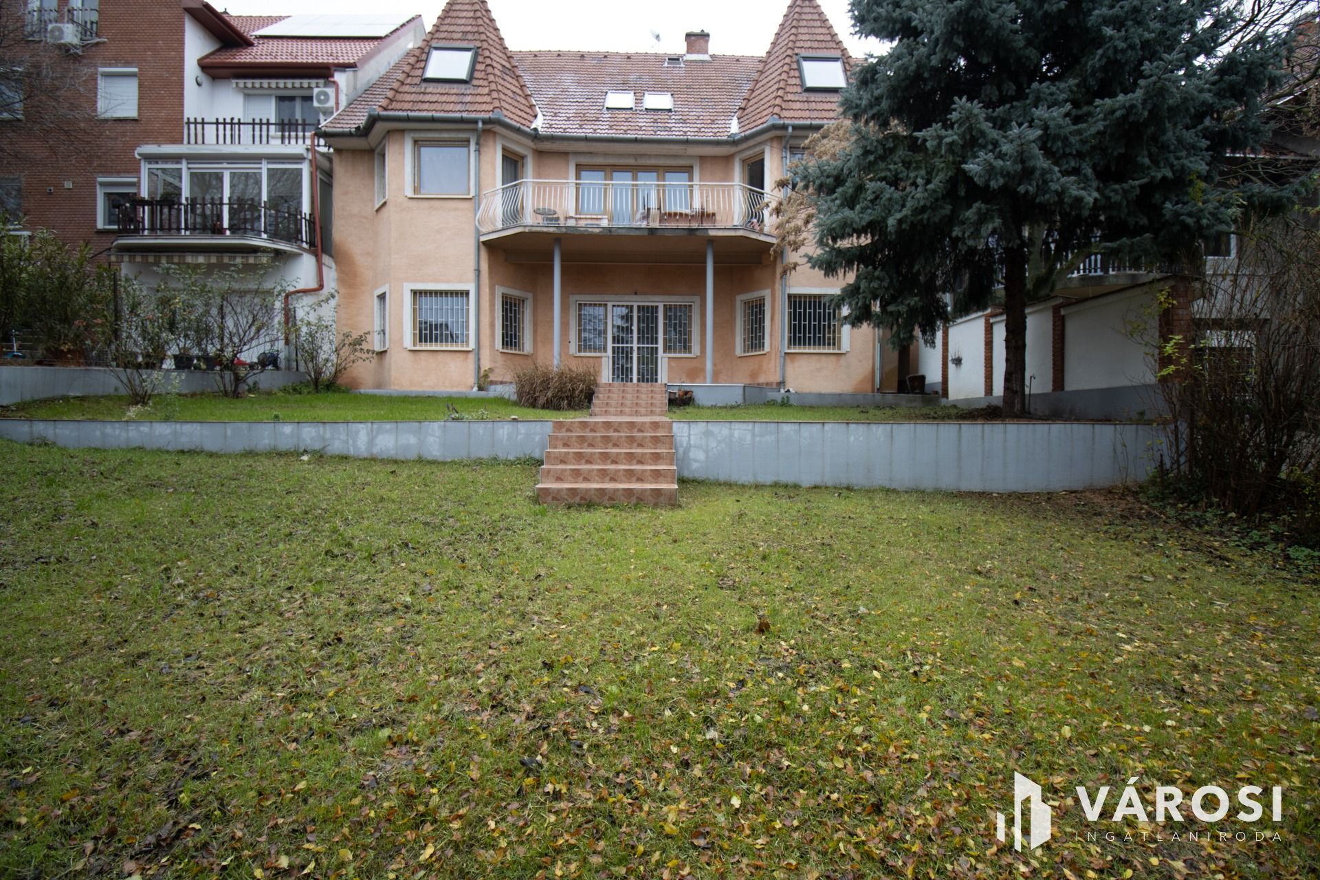 Az ingatlan elhelyezkedésének köszönhetöen, néhány lépcsőt lefelé kell menni a lakás megközelítéséhez, mivel az az alsó szint, de cserébe az egész kert, terasszal a lakáshoz tartozik kizárólagosan.