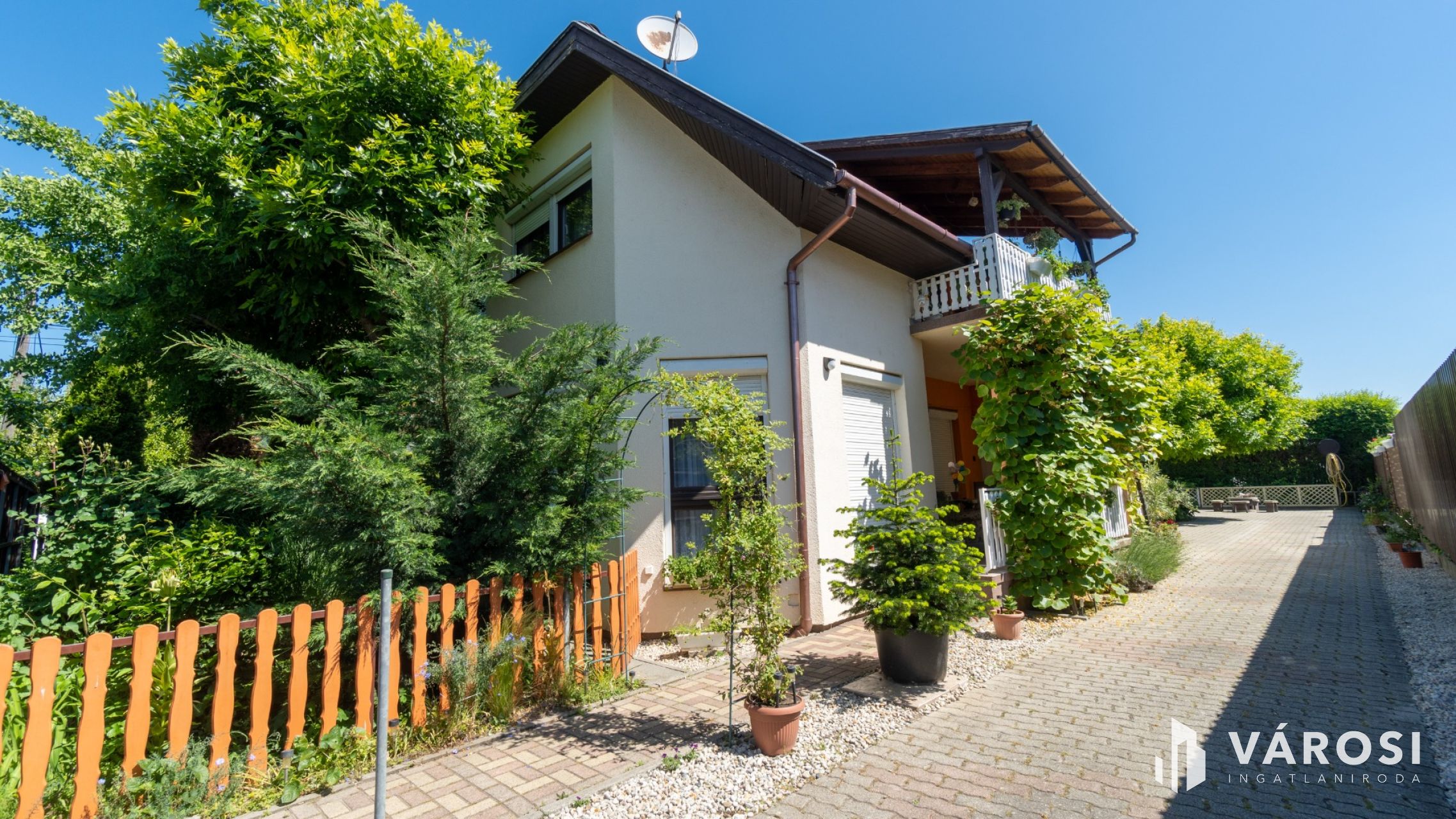 A kert parkosított és gondozott, ahol gondtalanul élvezhetjük kellemes nyári estéket. A kertben rendelkezésre áll fúrt kút is az öntözéshez. Az udvarban több autó számára térkövezett beálló van biztosítva.
