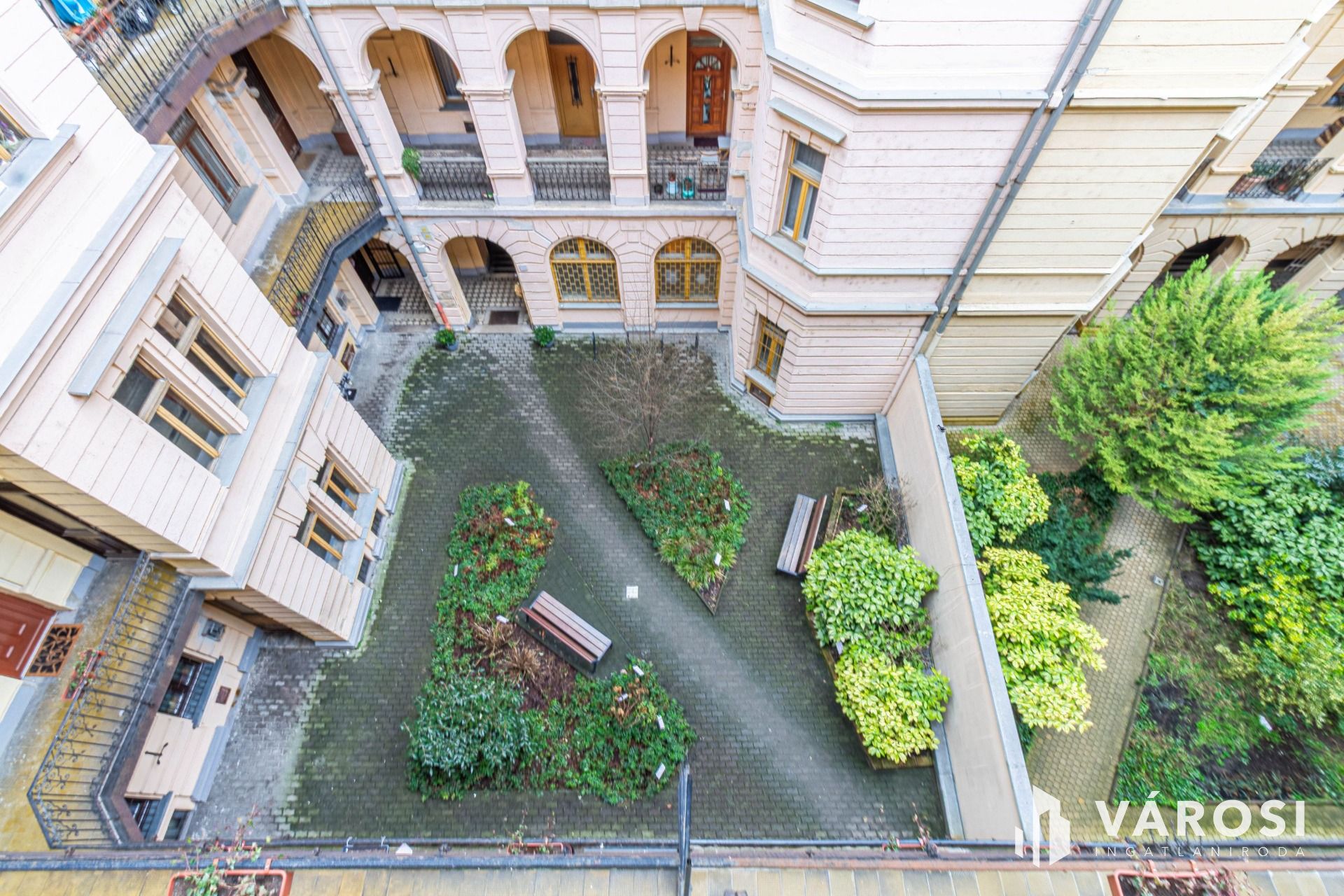 Az ingatlan a társasház legfelső, 3. emeletén helyezkedik el. Belső udvari fekvésének köszönhetően meglepően csendes.