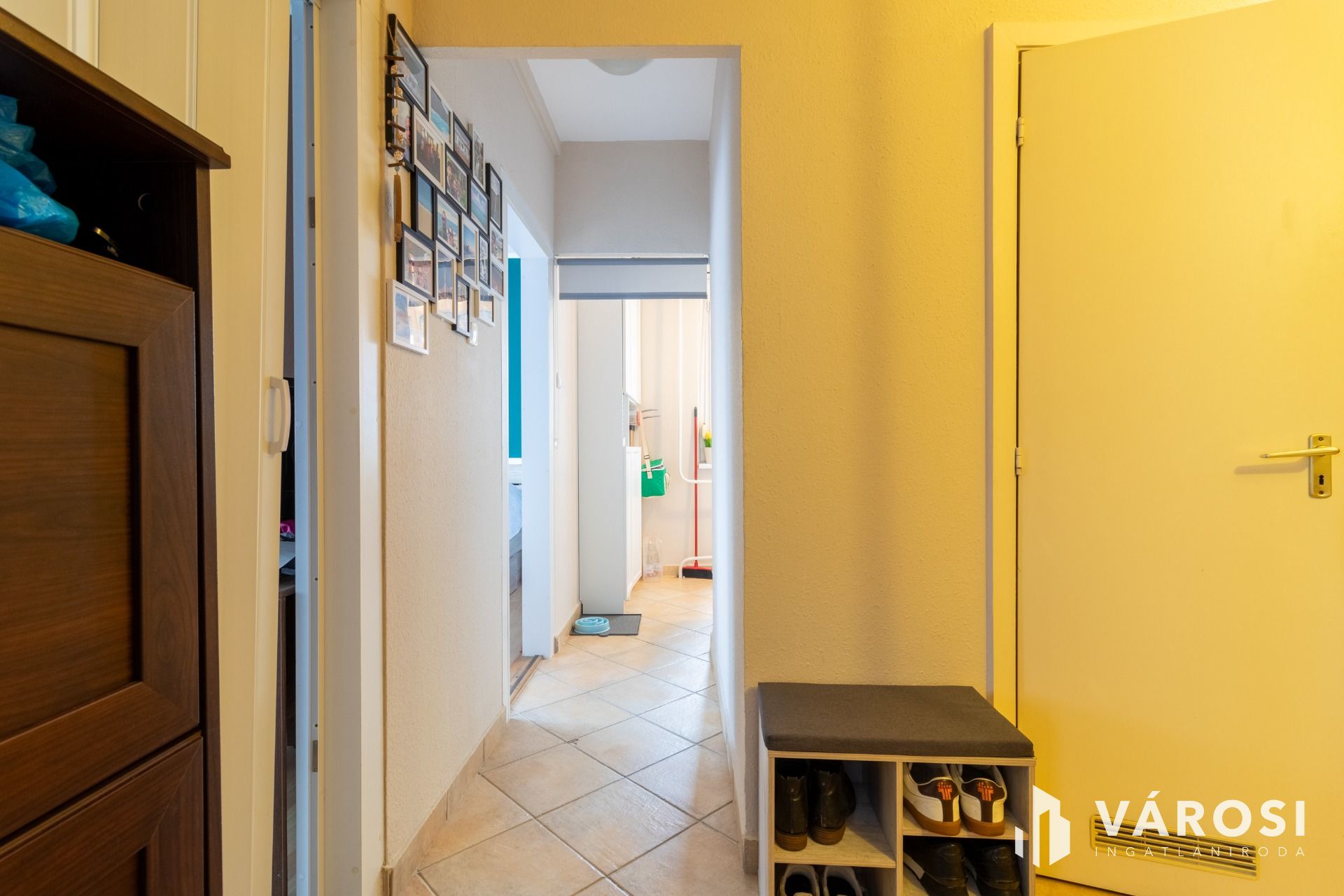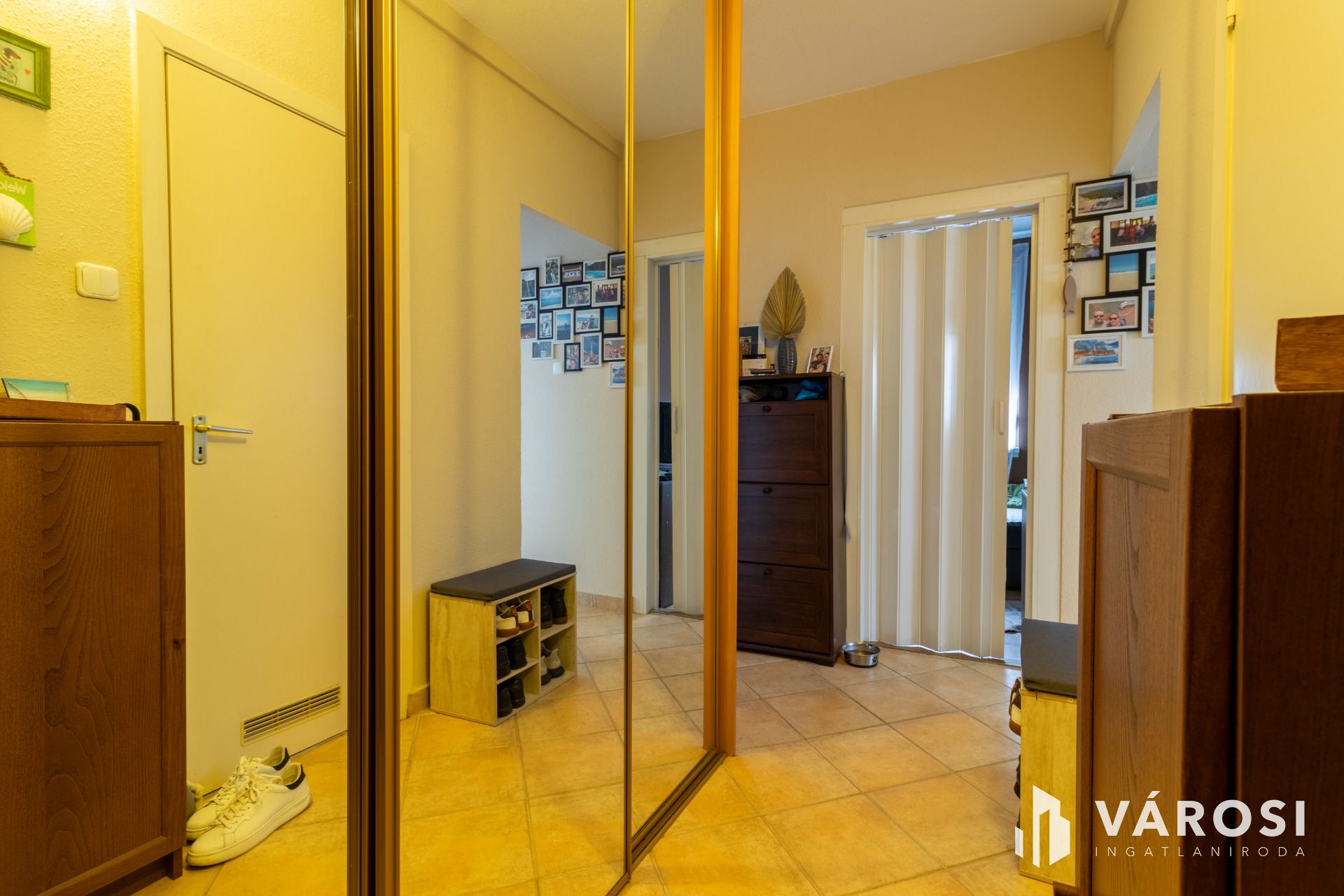 A lakás világos, praktikus elosztású: a szobákban laminált padló, míg a közlekedőben, konyhában, fürdőben és WC-ben hidegburkolat található.