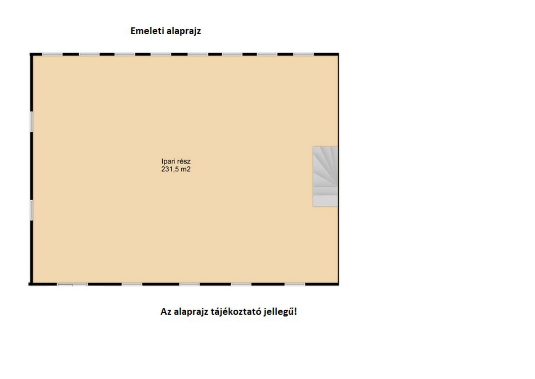 Az épület hasznos területe 816m2, melyből a garzon 24m2. A körbekerített terület 2874m2, ahová két nagykapun lehet bejutni. Az udvaron található továbbá, egy jó állapotú melléképület, mely korábban mázsaházként funkcionált.