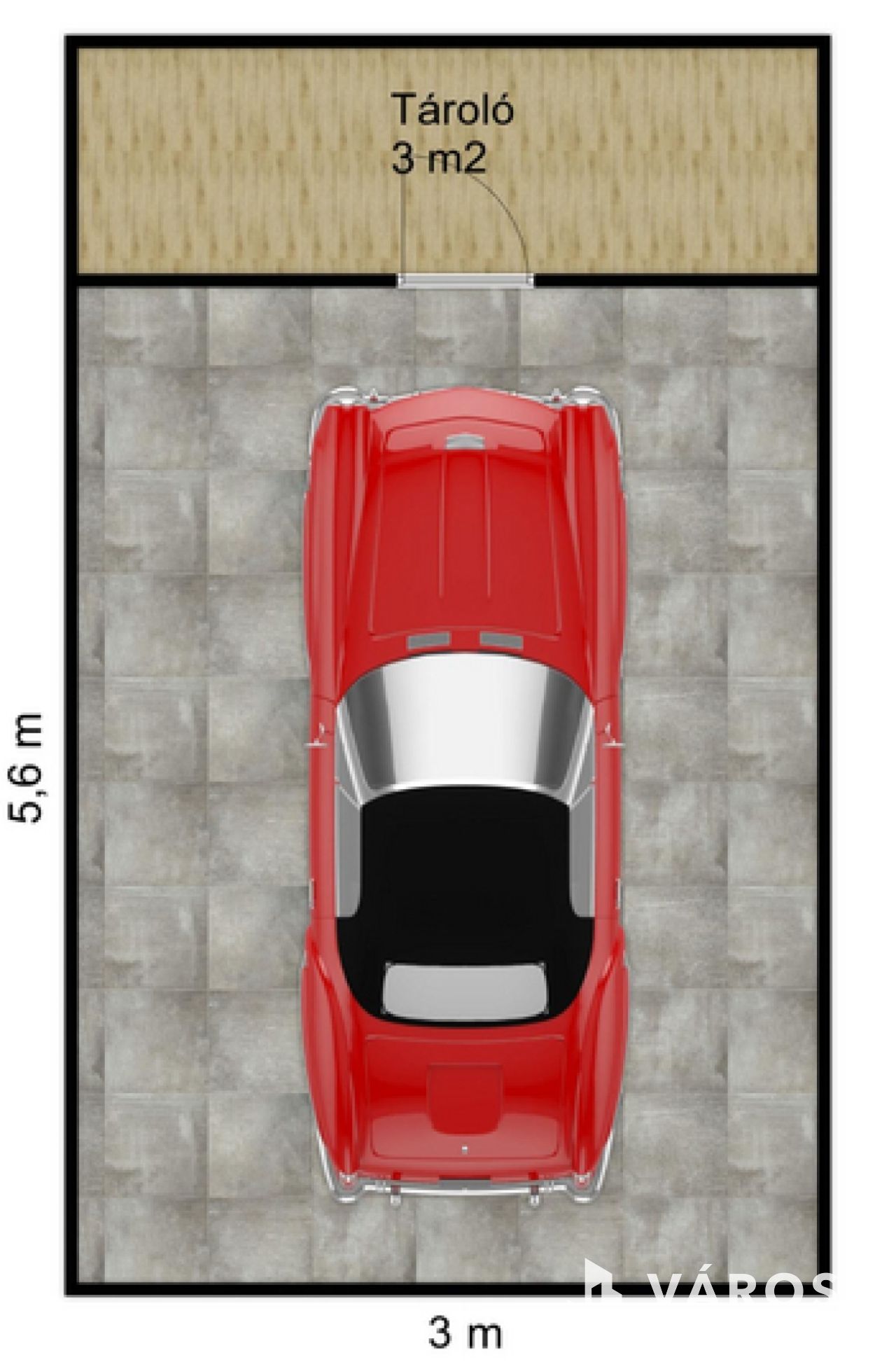 - A garázs 17 négyzetméteres, ebből a tároló rész kb. 2,7 négyzetméter