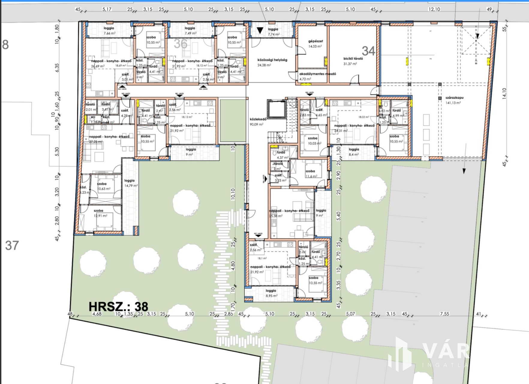 Makón, presztizs lokációval rendelkező - Makói fürdőtől 30 méterre - a Szent János téren, Eladó egy most induló, tégla építésű, FÖLDSZINTI, 81,75 nm-es élettérrel rendelkező, amerikai konyha nappali plusz két szobás loggiás tégla lakás (002.lakás), liftes házban, amelyhez igény szerint (ez külön megállapodás lehet az eladóval), 10-30 nm közötti saját udvar is járhat hozzá.