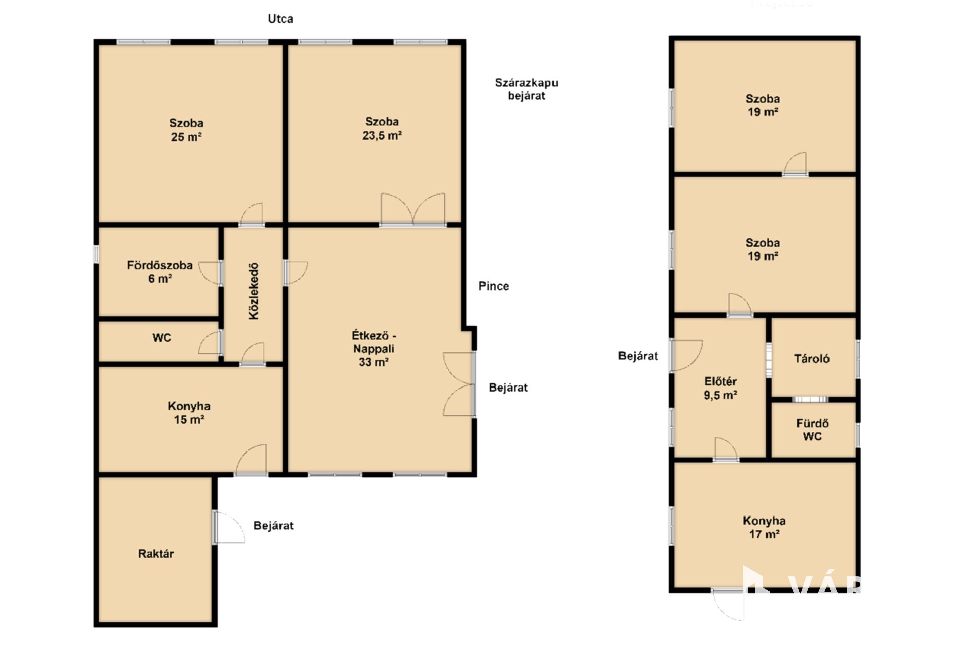 - kettő szoba 25 m², 23,5 m²