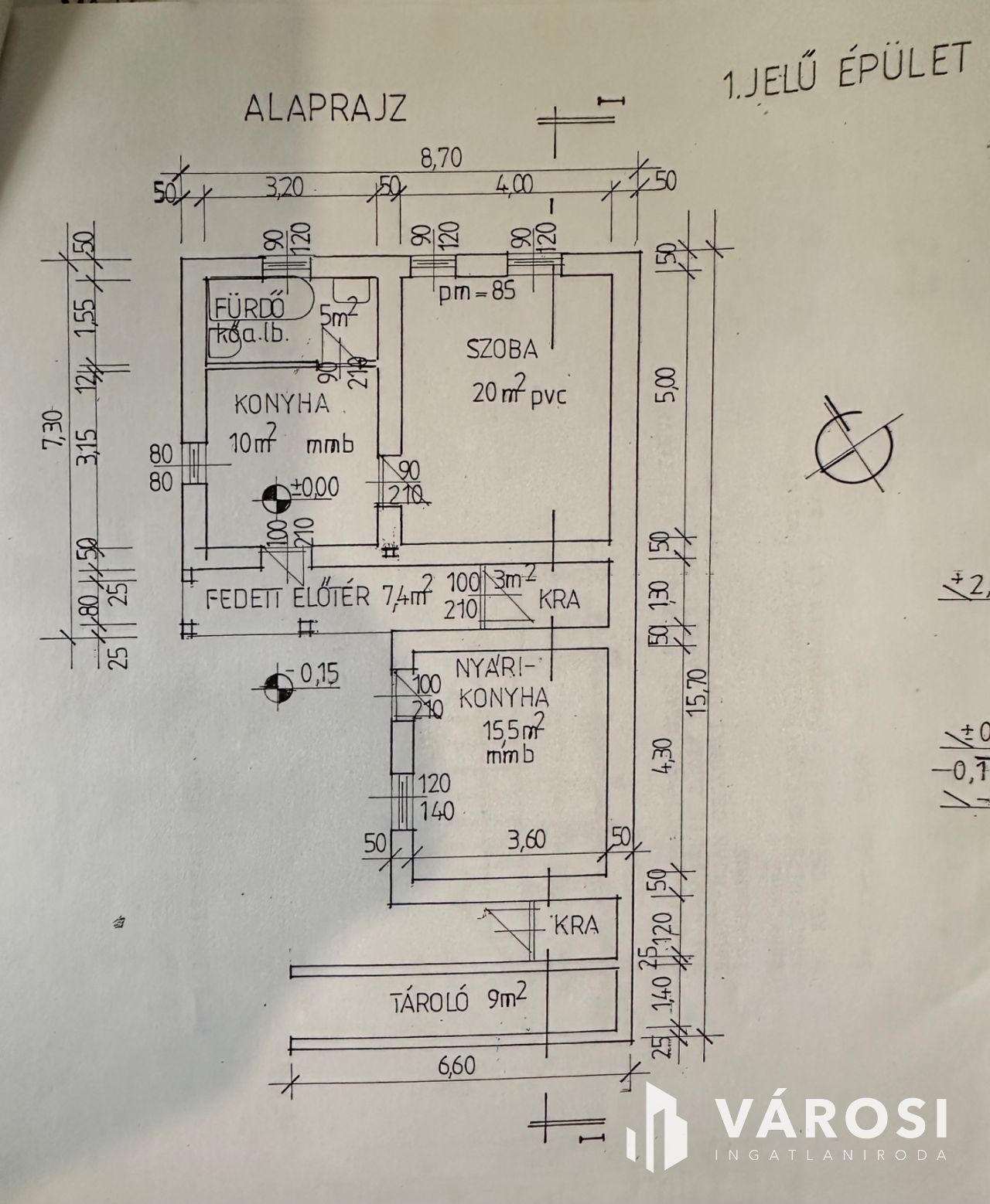 Az telephelyen 2 különálló épület található. A 60 nm-es kisebb irodai funkciót lát el. A nagyobb 88 nm-es faipari termelő tevékenységre és raktározásra kialakított. Az épületek mellett fedett, raktározásra, tárolásra alkalmas felépítmények találhatók.