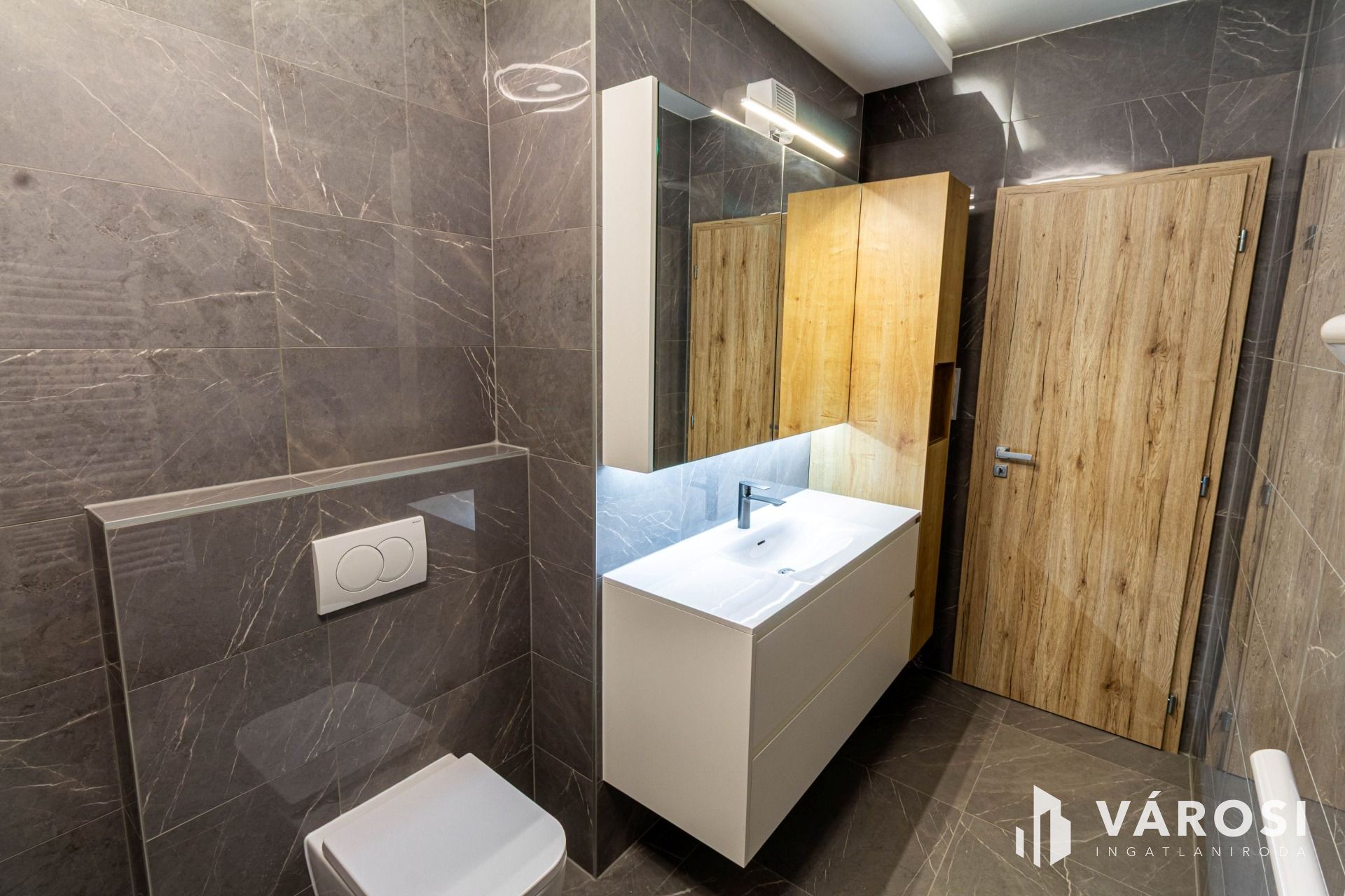 A lakás belső színei, a csempe és a bútorok harmonikus, kellemes összhangja nyugodt, megnyugtató és egyben elegáns légkört teremt, ami az otthonosság érzését azonnal átadja.