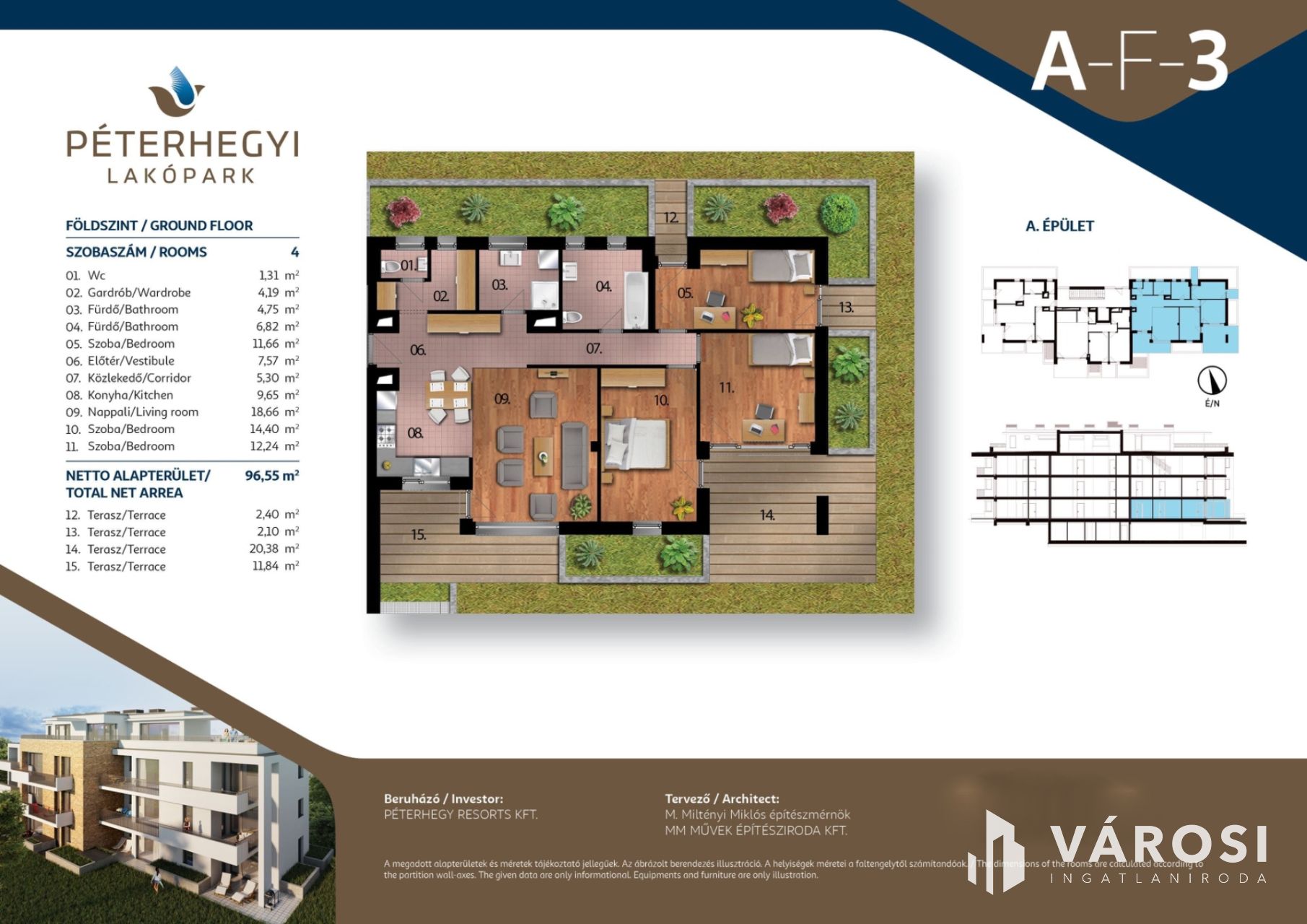 Alapterülete 96 m2 + 37 m2 terasz.