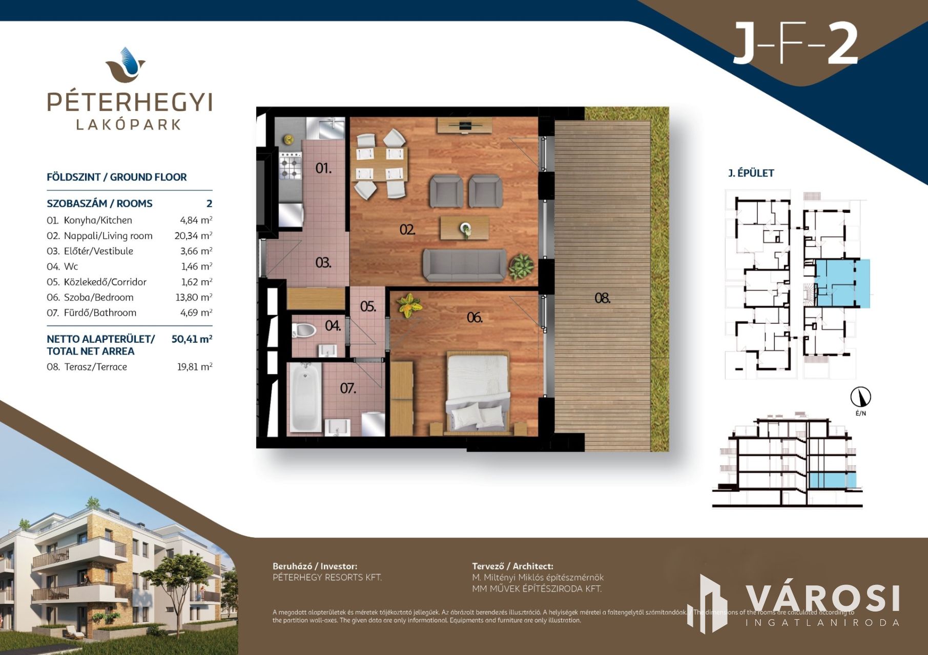 Alapterülete 50,41 m2 + 9,89 m2 terasz.