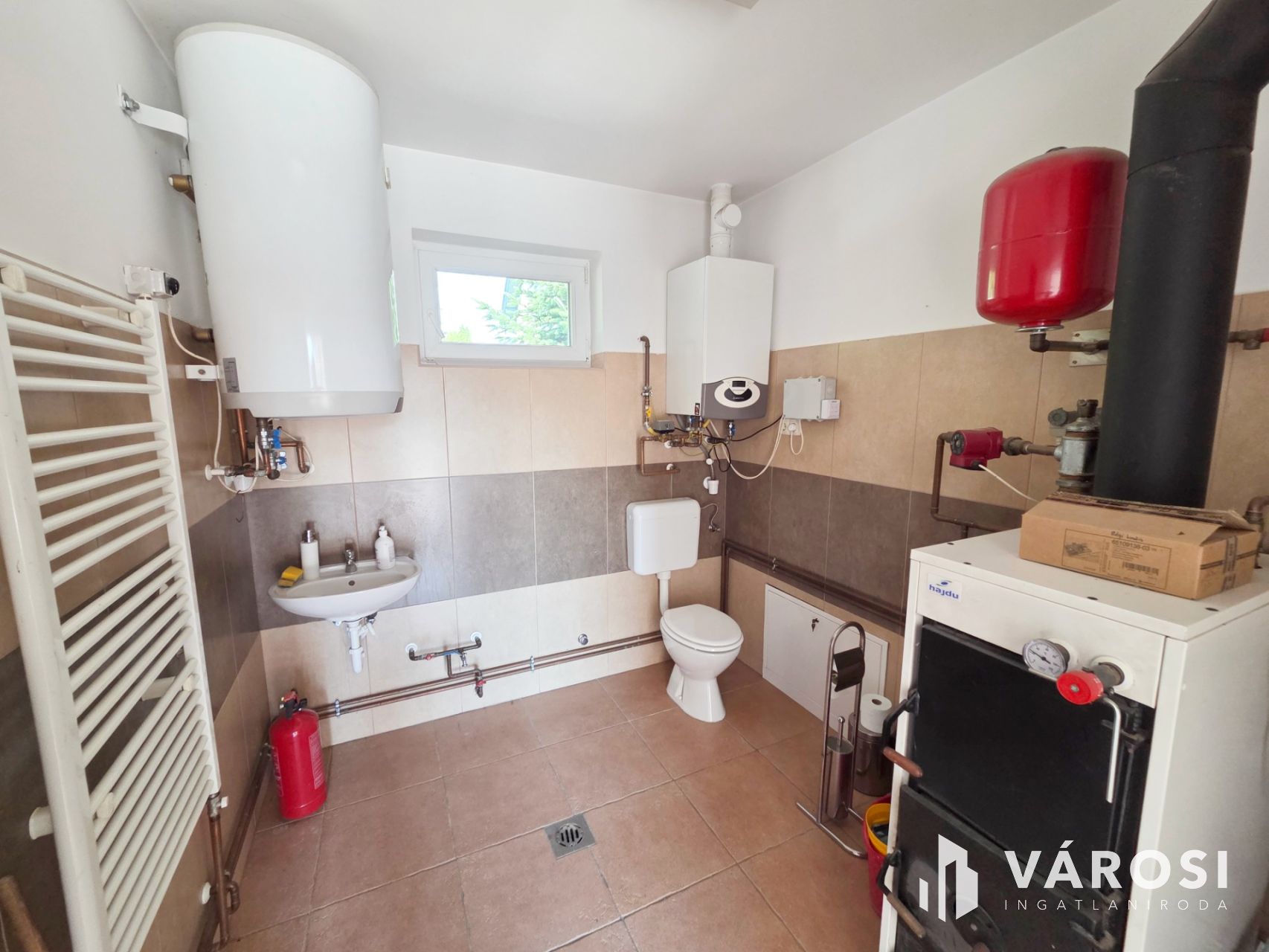 - Fűtésrendszer: Ariston gázgazán radiátoros hőleadással. Ezen kívül található a házban egy vegyes tüzelésű kazán is.
