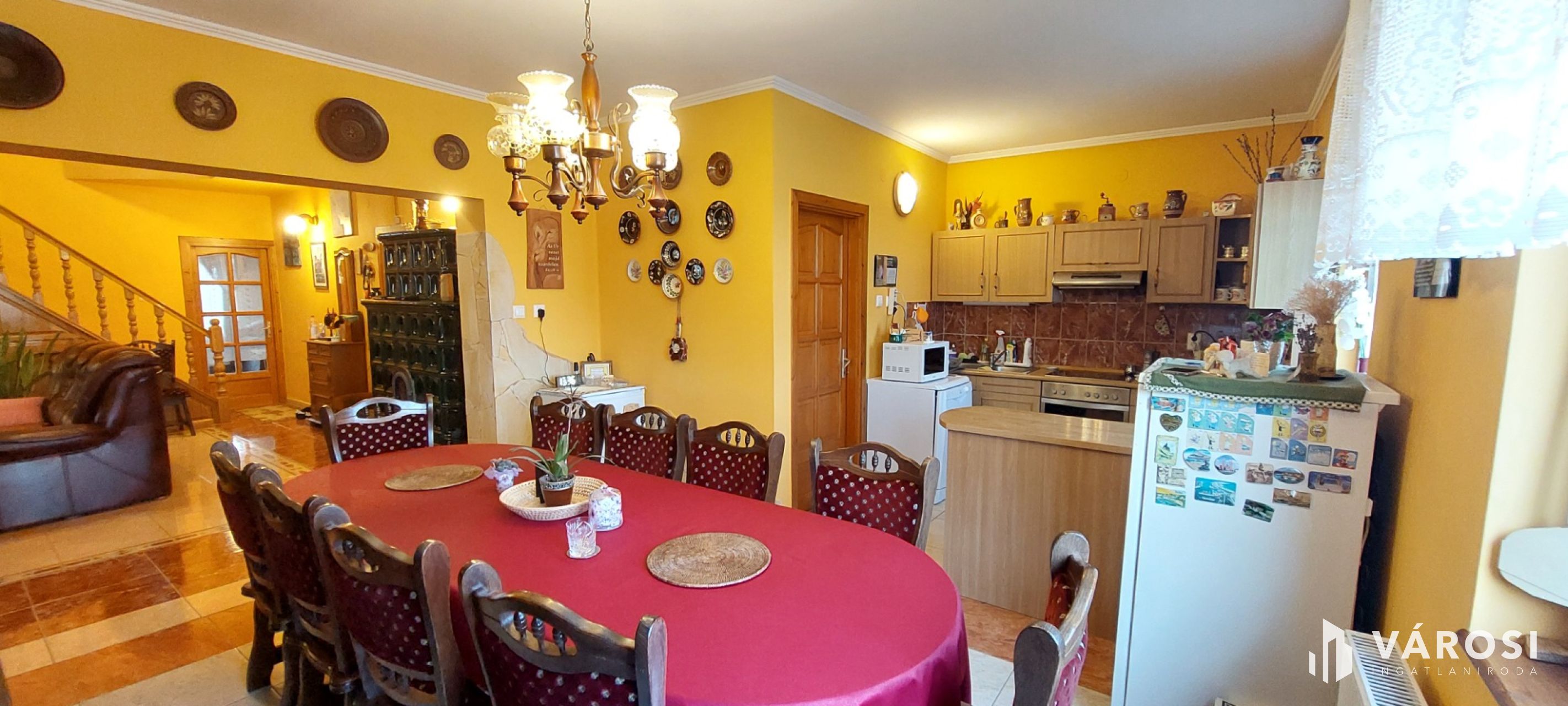 A nappali felett nyitott légtér található, ahonnan gyönyörű tölgyfa lépcső vezet az emeletre.