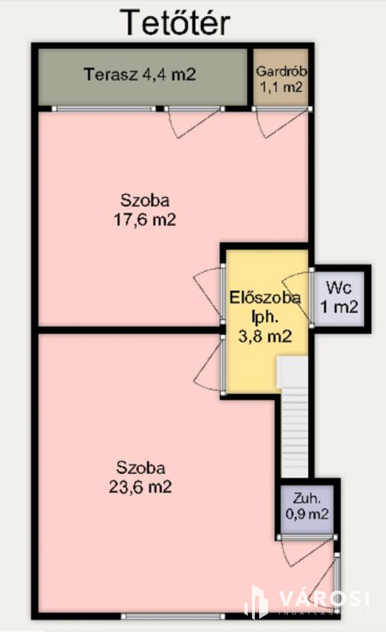 Az ingatlan belső lépcsőkön és kívülről is jól átjárható.