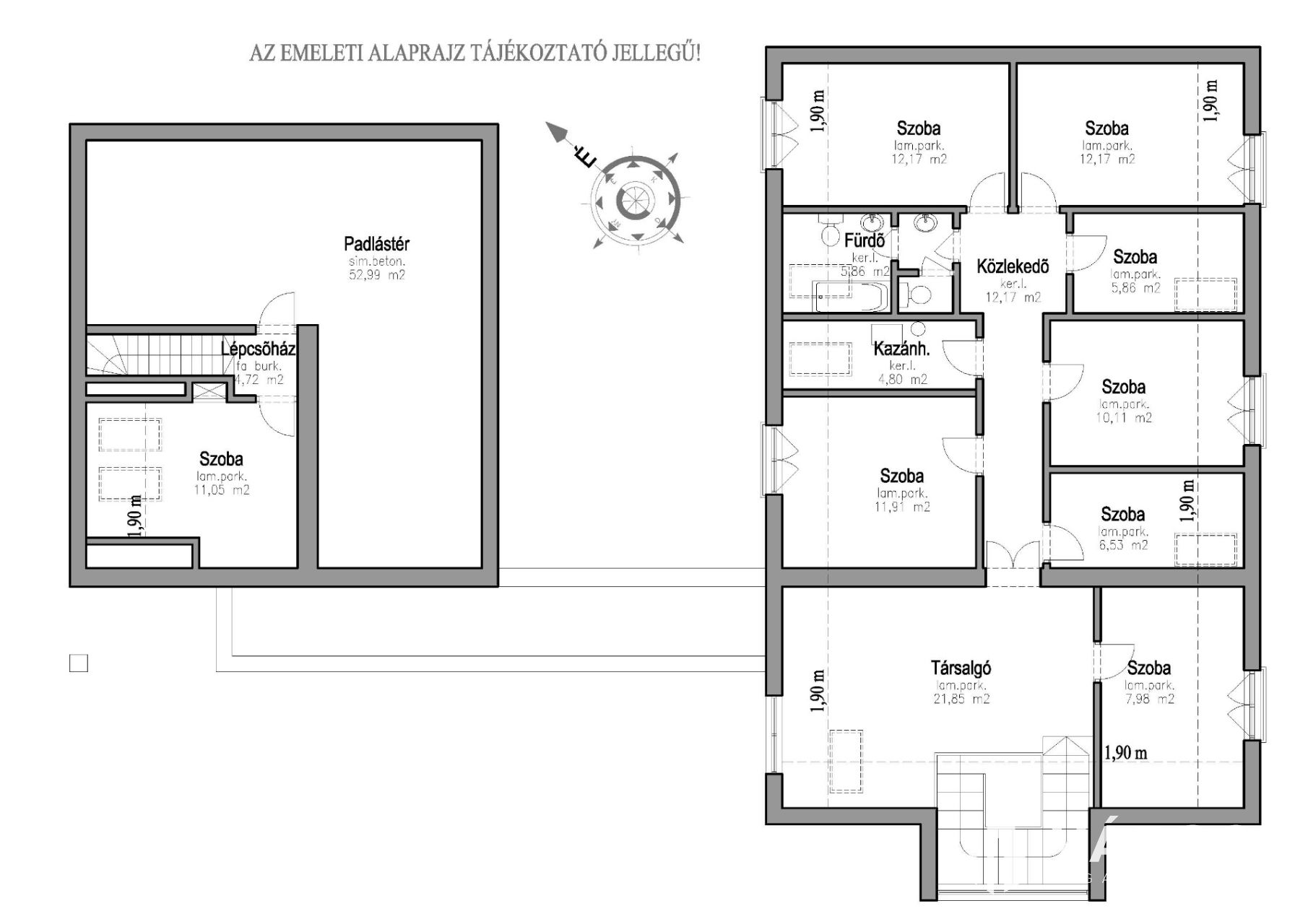 szoba, lépcsőh., beépíthető tetőtér