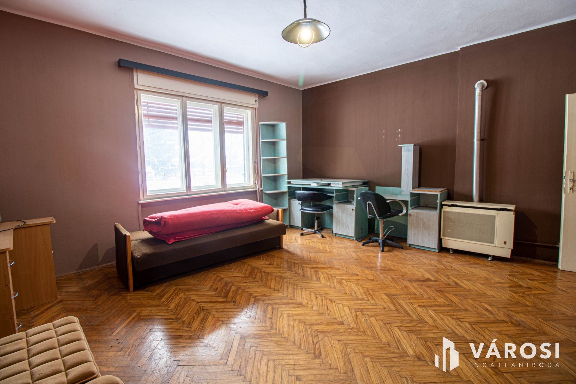 Az ingatlan sík, közel 1500 nm nagyságú területen fekszik, melyen régebbi melléképületek is helyet kaptak. A melléképületek jelentős ráfordítást igényelnek. Az épület átlagos állapotú, akár jelen állapotában is alkalmas lakhatásra, de korszerűsítés után valóban kiváló élettér alakítható ki benne. A ház alapja beton, falazata stabil. A helyiségek fűtéséről konvektorok gondoskodnak. Az utcafronti szobák alatt tágas, száraz pince húzódik. A lakótér helyiségei: 4 teljes értékű szoba, konyha, fürdőszoba, közlekedő, kamra, terasz. A 4 szoba akár nagyobb család számára is megfelelő, tágas otthont biztosíthat. Az ingatlan nem lakott, így adásvétel után rövid időn belül birtokba vehető.