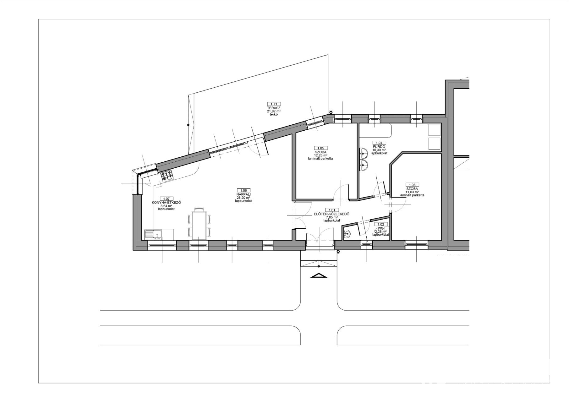 - Terasz: 21,82 m2