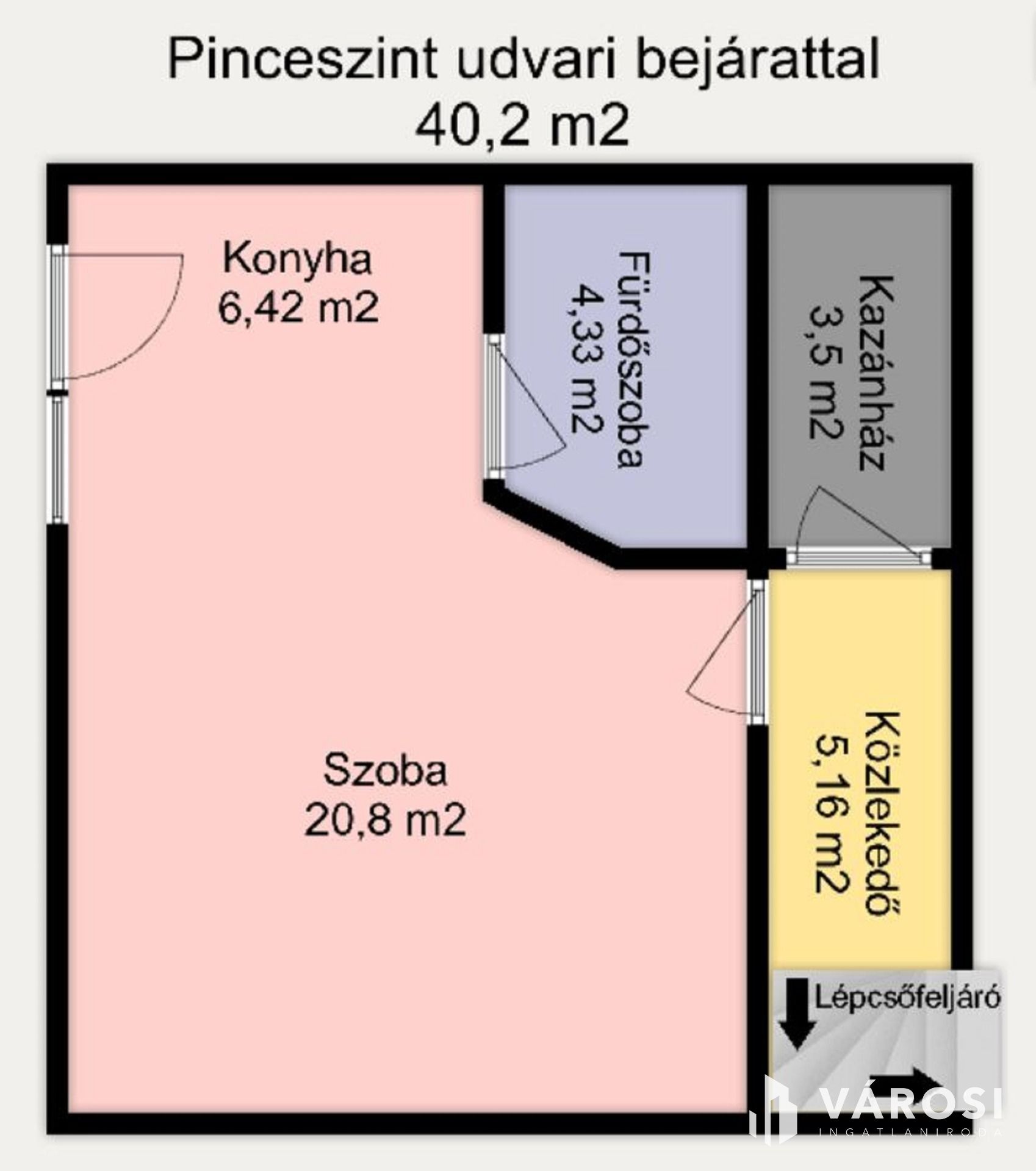 A lenti szuterén, külön bejárattal és terasszal rendelkezik, így önálló minigarzonként is használható.